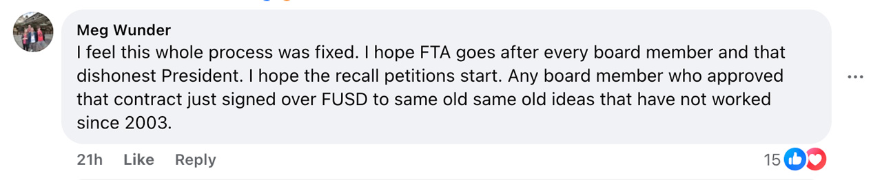 “The board had a unique opportunity to use this process as a way to rebuild its trust with the community. Unfortunately, it seems like they missed that opportunity.” — FTA President Manuel Bonilla