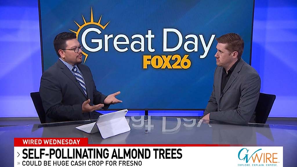 GV Wire’s Edward Smith talks with KMPH Fox 26 “Great Day” anchor Karl Cooke about the introduction of a new self-pollinating almond tree that requires less resources. Farmers may have the opportunity to "pre-order" the tree next year and deliveries may come as early as 2027. Some farmers say this...