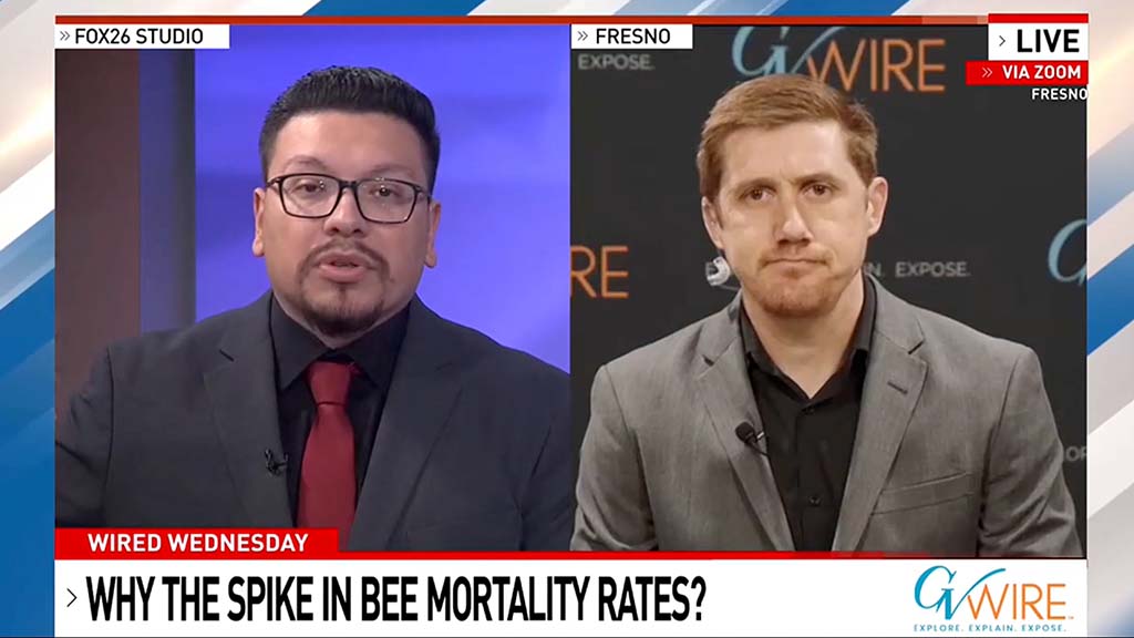 GV Wire’s Edward Smith talks with KMPH Fox 26 “Great Day” anchor Karl Cooke about the spike in bee colony deaths and the extreme shortage of colonies in the Central Valley. A pesky "mite" affecting the bloodstream of bees may be the main cause of many bee deaths. Other possible...