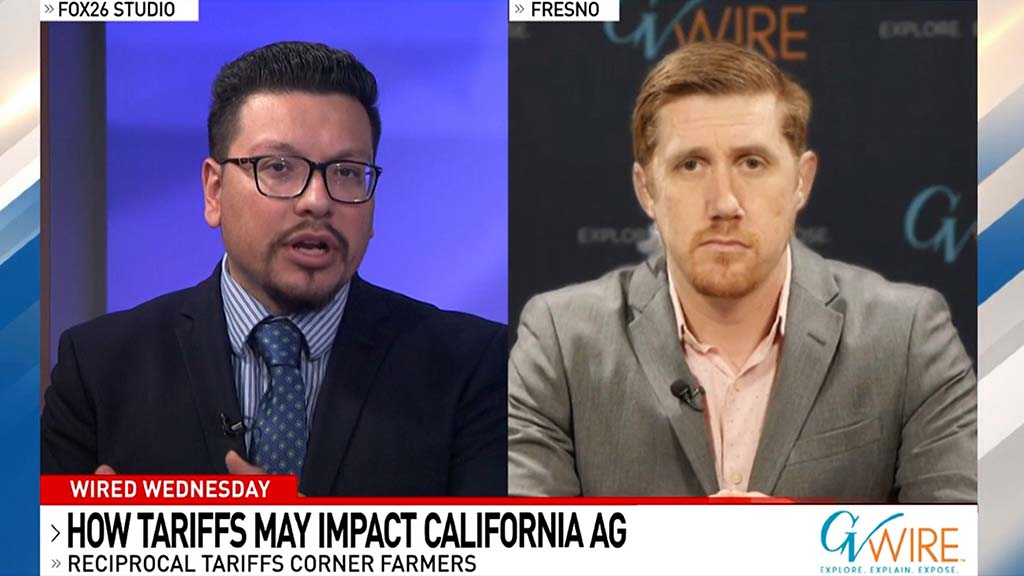 GV Wire’s Edward Smith talks with KMPH Fox 26 “Great Day” anchor Karl Cooke about President Trump's tariffs and their possible impact on California's agriculture. According to Smith, when there's an excess supply of crops, farmers depend on foreign markets to sell their products.