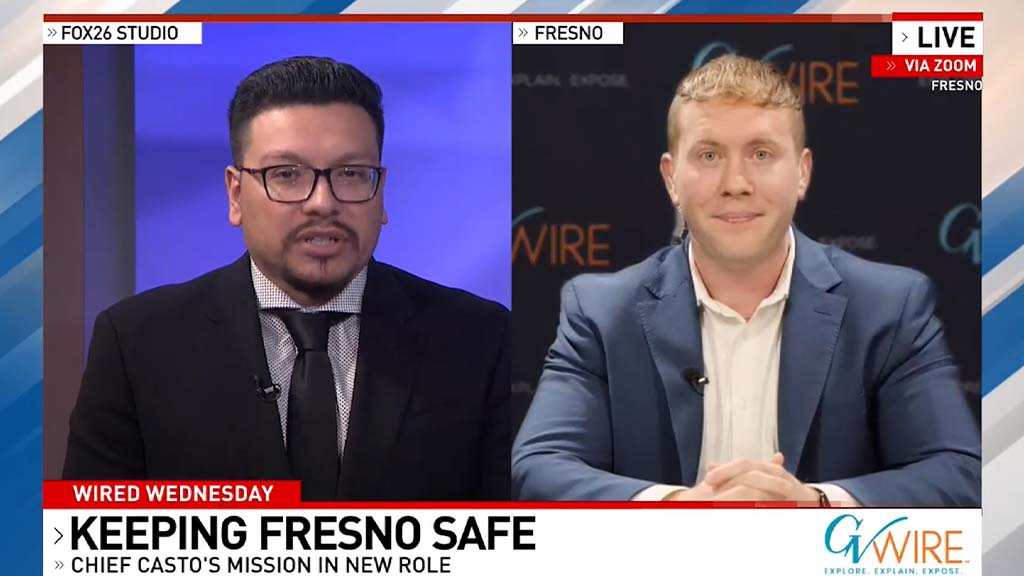 GV Wire reporter and editor Anthony W. Haddad talks with KMPH Fox 26 “Great Day” anchor Karl Cooke about a sit-down interview with Fresno Police Chief Mindy Casto. Haddad discussed the chief's goals of reducing violent and property crimes and implementing new technologies into the department. Chief Casto says the...
