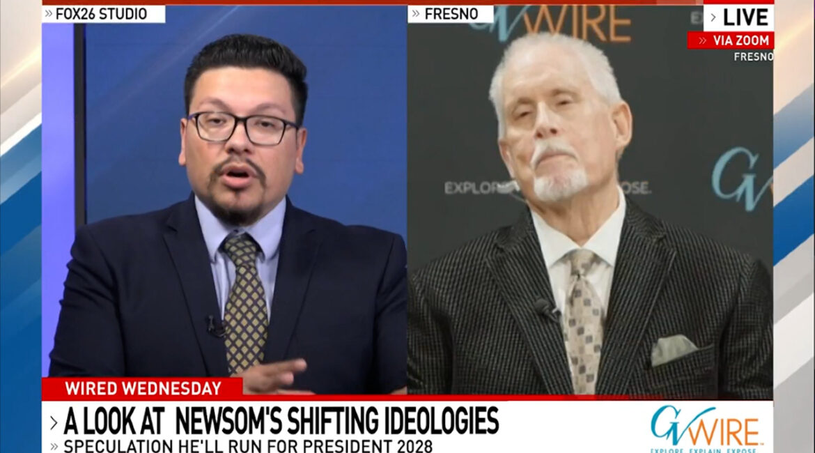 GV Wire News Director Bill McEwen talks with KMPH Fox 26 “Great Day” anchor Karl Cooke about the possibility of Gov. Gavin Newsom becoming the next Democratic nominee for president. Progressives are questioning Newsom's credentials because of the conservatives invited to his podcast and his opposition to allowing transgender athletes...