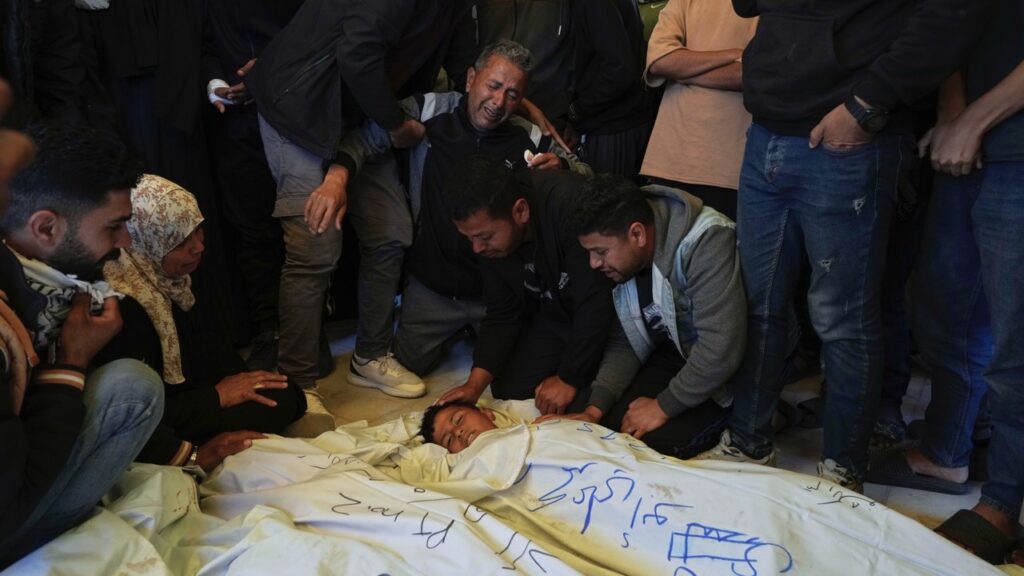 DEIR AL-BALAH, Gaza Strip — Israeli strikes on the Gaza Strip killed at least 17 Palestinians, mostly women and children, and destroyed bull...